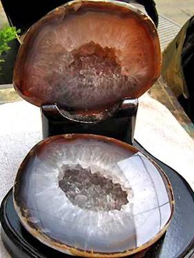 據(jù)東海圣時(shí)水晶博物館專家介紹,瑪瑙聚寶盆,因會(huì)聚千萬(wàn)粒水晶與珍 奇瑪瑙于一身,猶如神仙居住的洞天福地,也是能量聚集點(diǎn),因而得名“龍穴”。一剖為二的瑪瑙盆里,水晶如茂密叢林般簇?fù)砩L(zhǎng)在瑪瑙壁上。瑪瑙聚寶盆富含強(qiáng)大內(nèi)斂的神奇能量,是財(cái)神寶物。傳說(shuō)中,聚寶盆能讓財(cái)富以相乘加倍的速度增加,富貴人家常用它作為擺放寶物及招財(cái)納吉之吉祥物。瑪瑙聚寶盆一直以來(lái)都是非常流行的風(fēng)水圣物,世間沒(méi)有完全一模一樣的聚寶盆,件件獨(dú)一無(wú)二、個(gè)個(gè)市場(chǎng)絕版!她打開時(shí)就是要納氣、蓄氣,蓋起來(lái)時(shí)就是在孵育、強(qiáng)化。